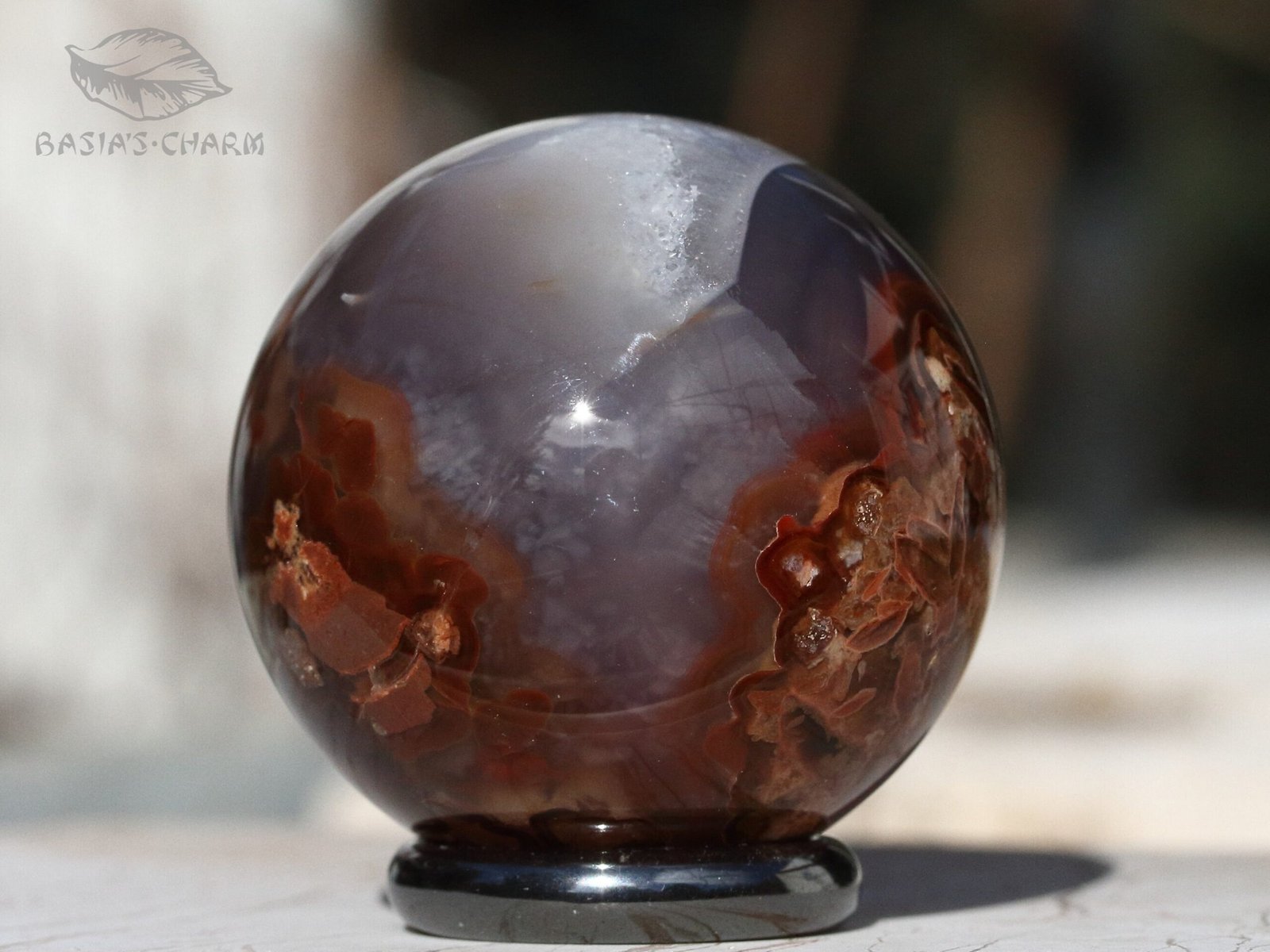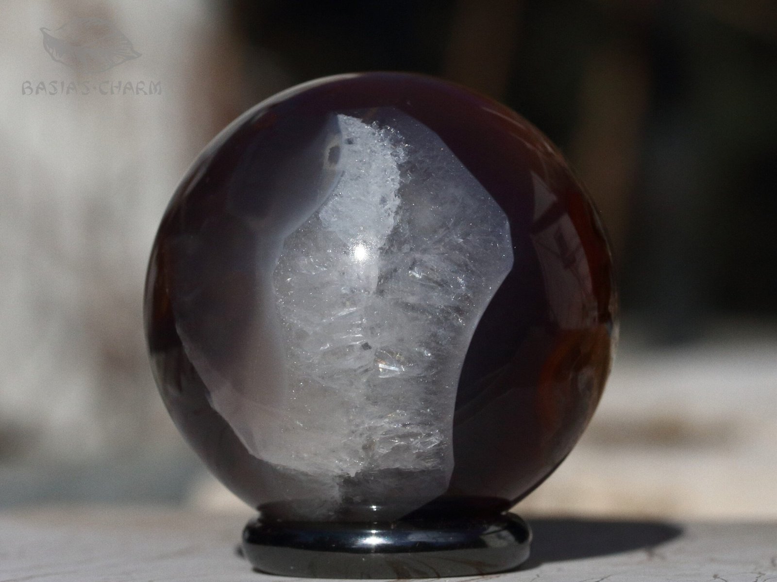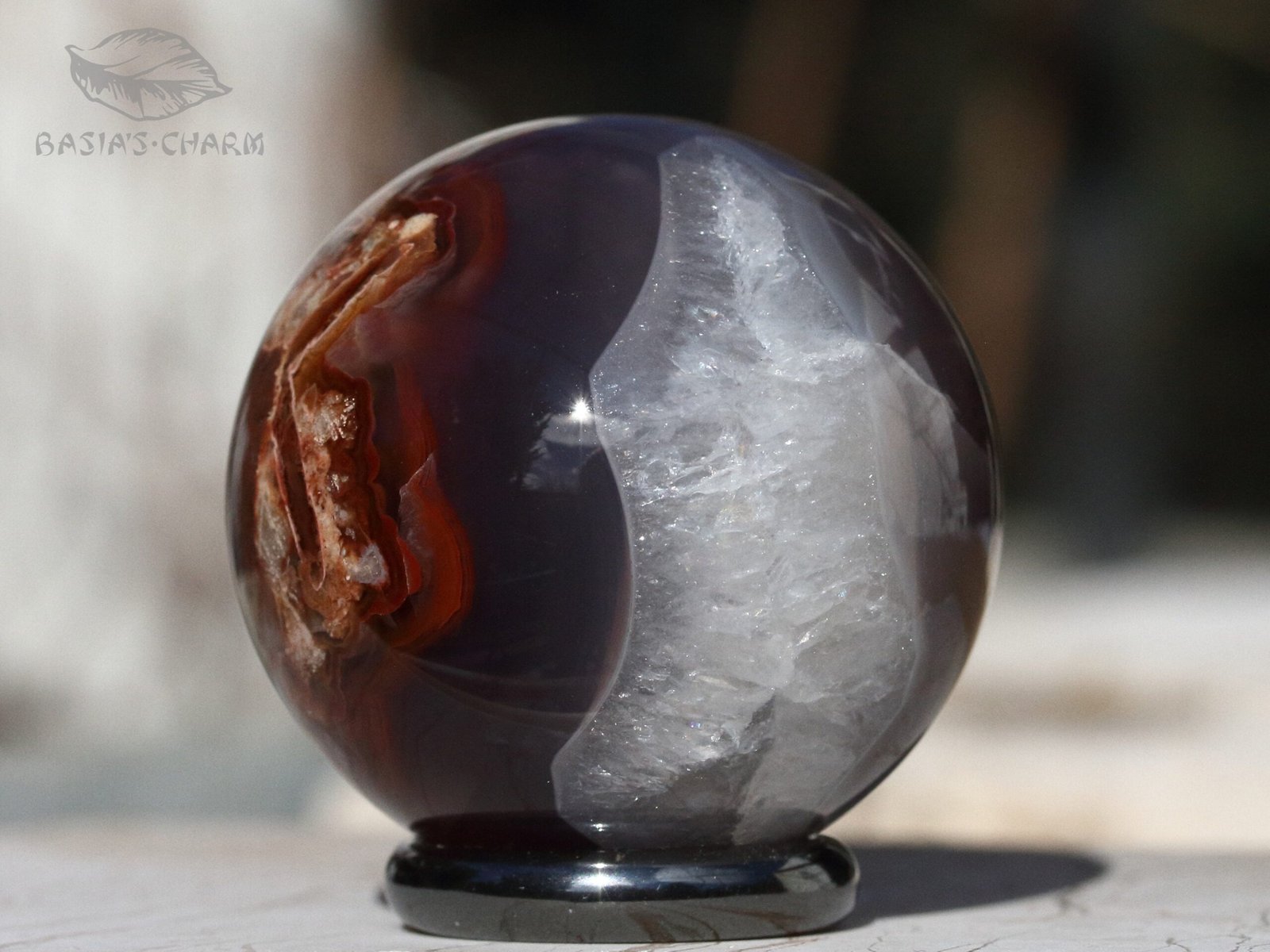Short description: Collectible gemstone sphere made of agate with quartz. Base mineral: Agate Detailed Composition: Agate, Quartz Locality: Kazakhstan Diameter: 44 mm (1.72 inch) Weight: 112 g (3,95 oz)