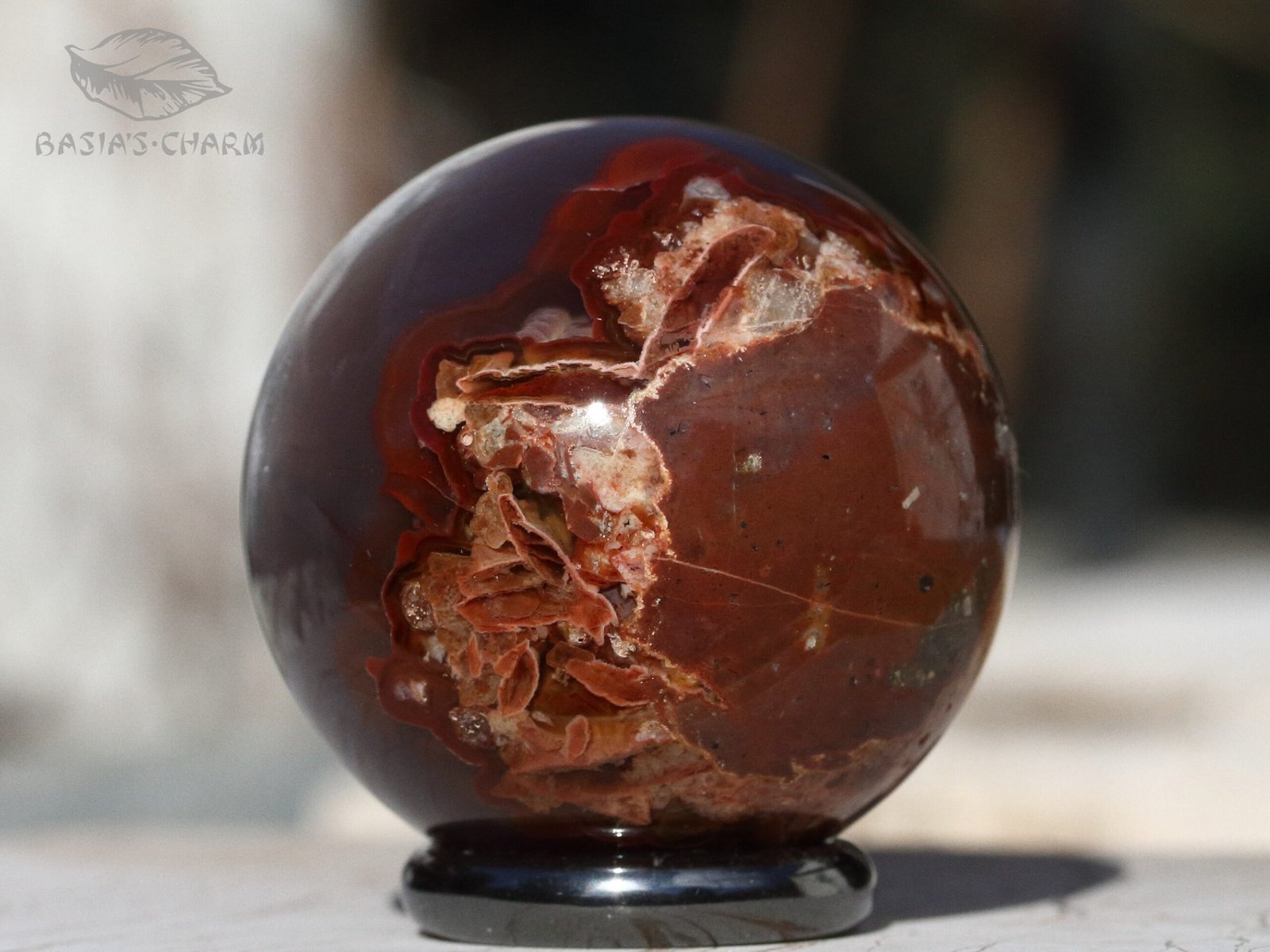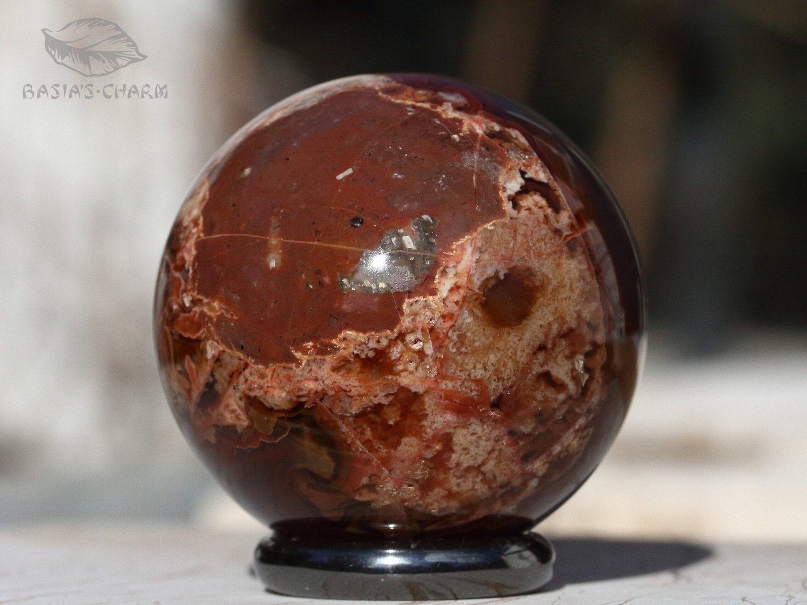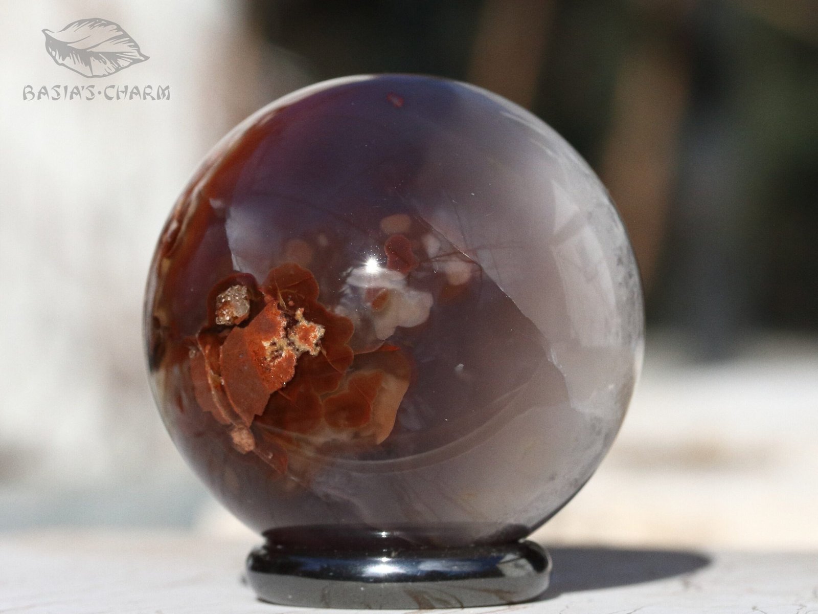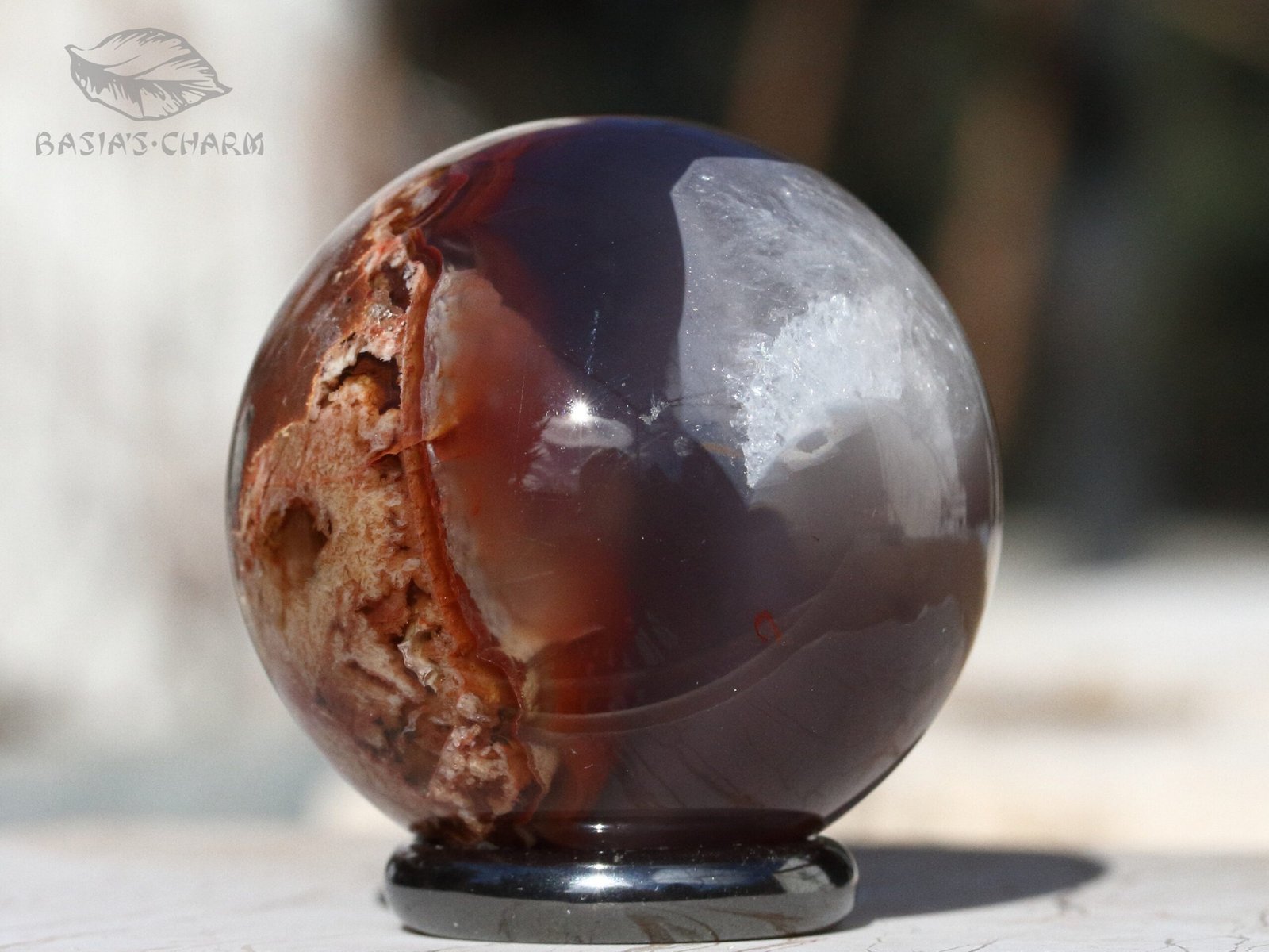 Short description: Collectible gemstone sphere made of agate with quartz. Base mineral: Agate Detailed Composition: Agate, Quartz Locality: Kazakhstan Diameter: 44 mm (1.72 inch) Weight: 112 g (3,95 oz)