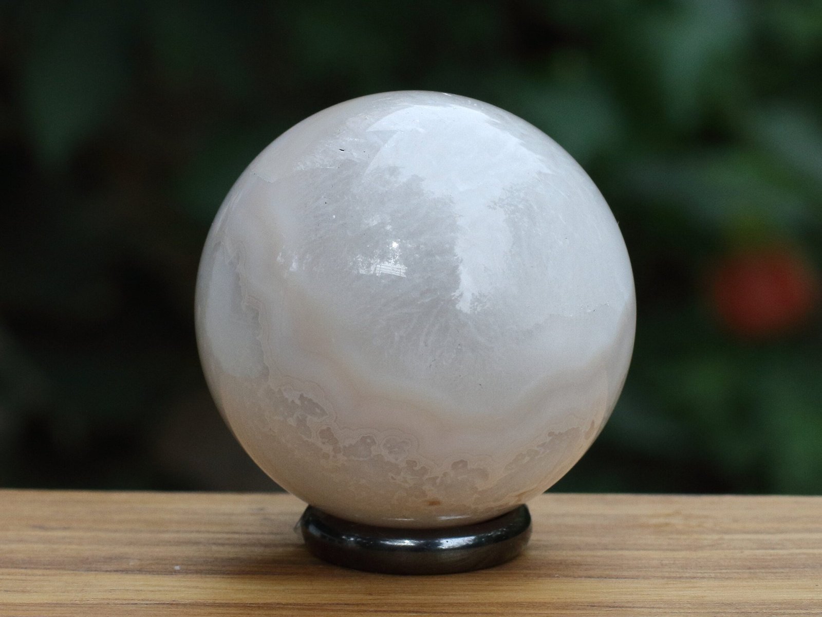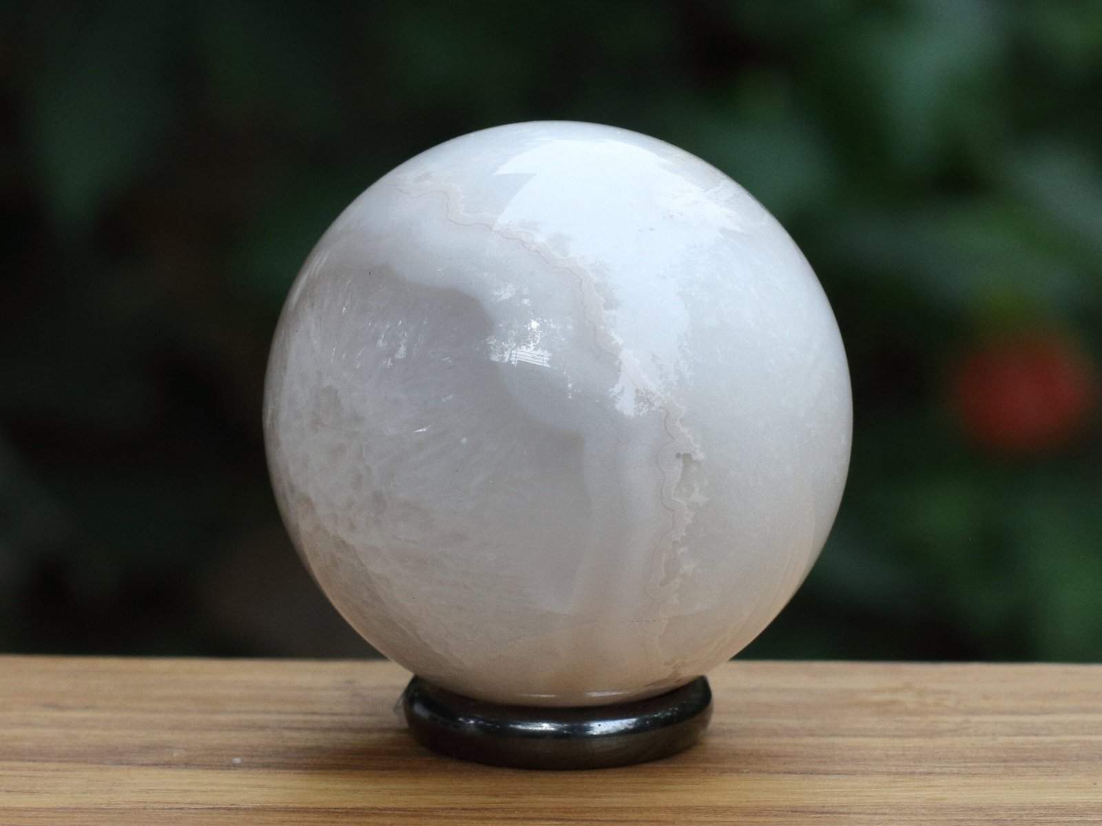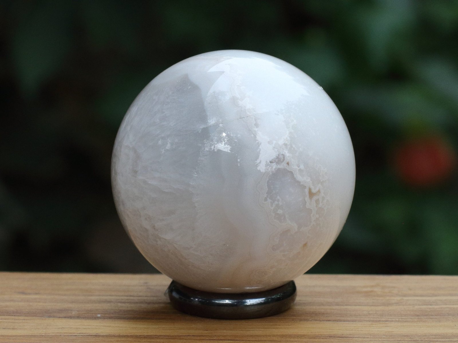 Short description: Collectible gemstone sphere made of white agate with quartz. Base mineral: AgateDetailed Composition: Agate, QuartzLocality: North CaucasusDiameter: 50 mm (1.98 inch)Weight: 172 g (6,07 oz)