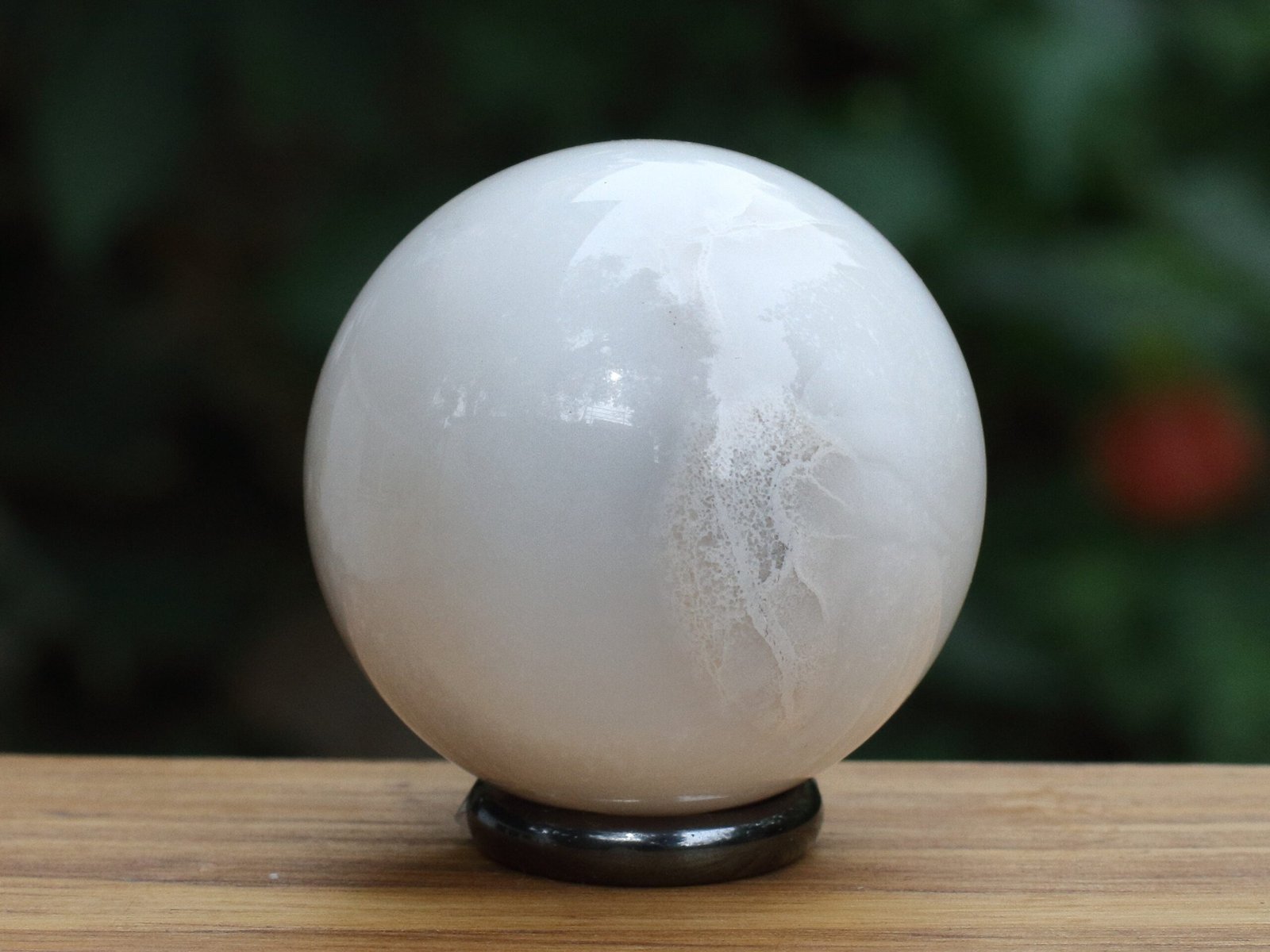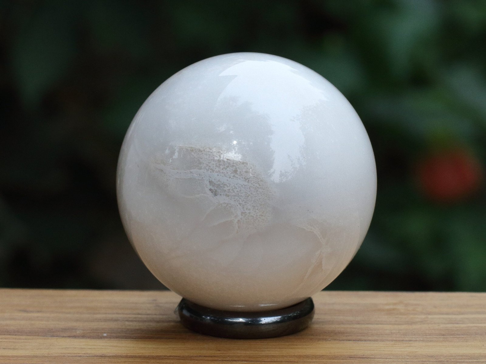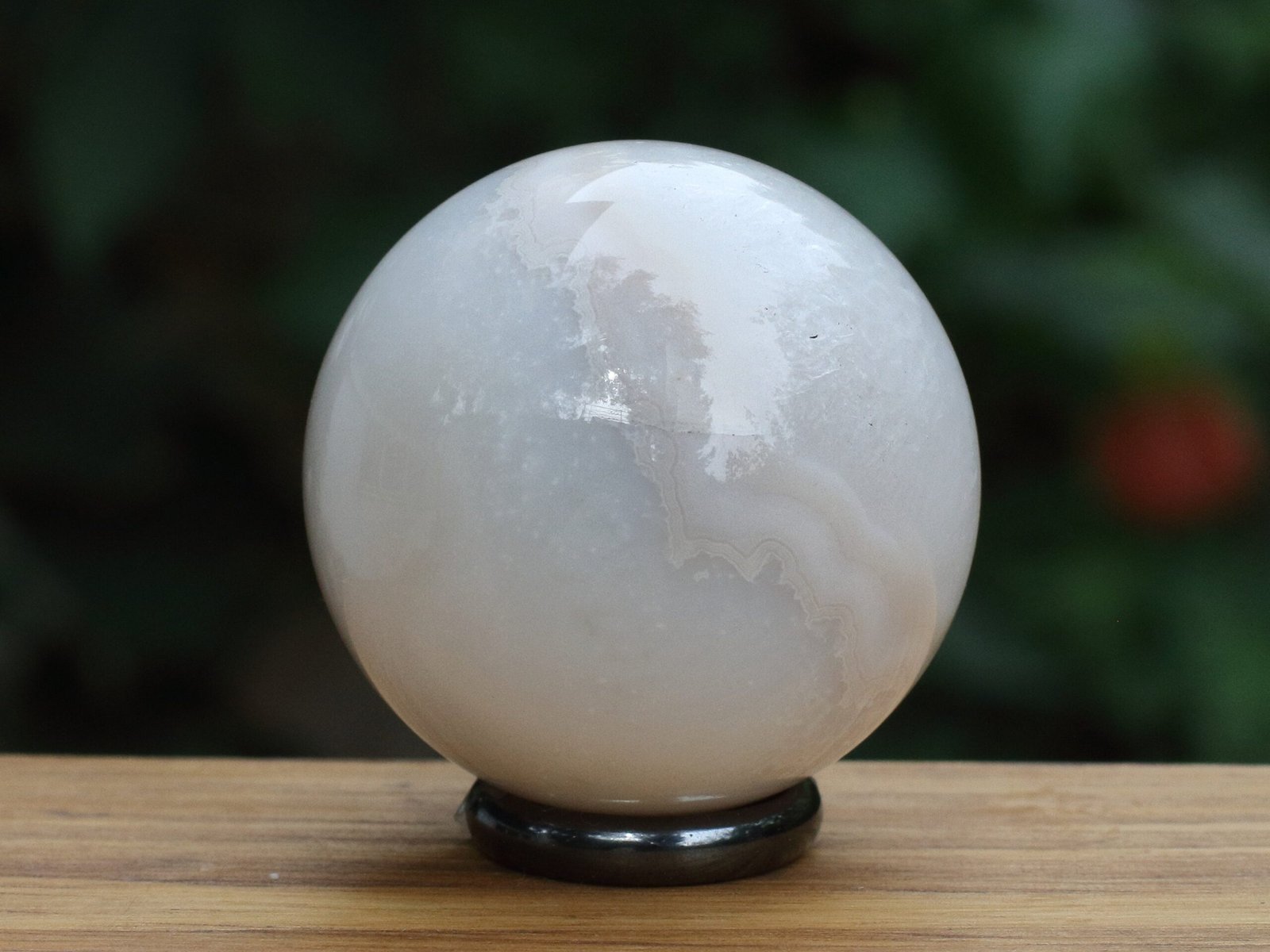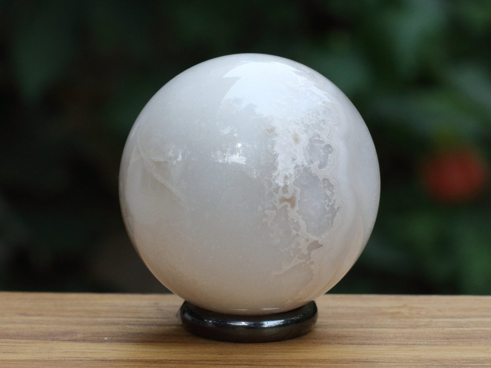 Short description: Collectible gemstone sphere made of white agate with quartz. Base mineral: AgateDetailed Composition: Agate, QuartzLocality: North CaucasusDiameter: 50 mm (1.98 inch)Weight: 172 g (6,07 oz)