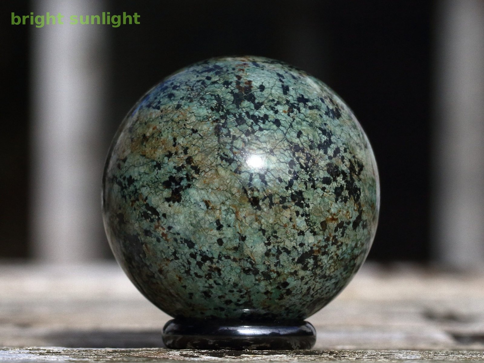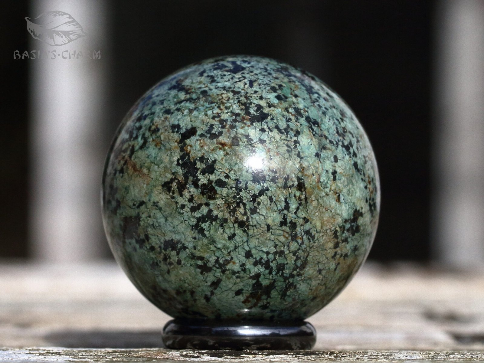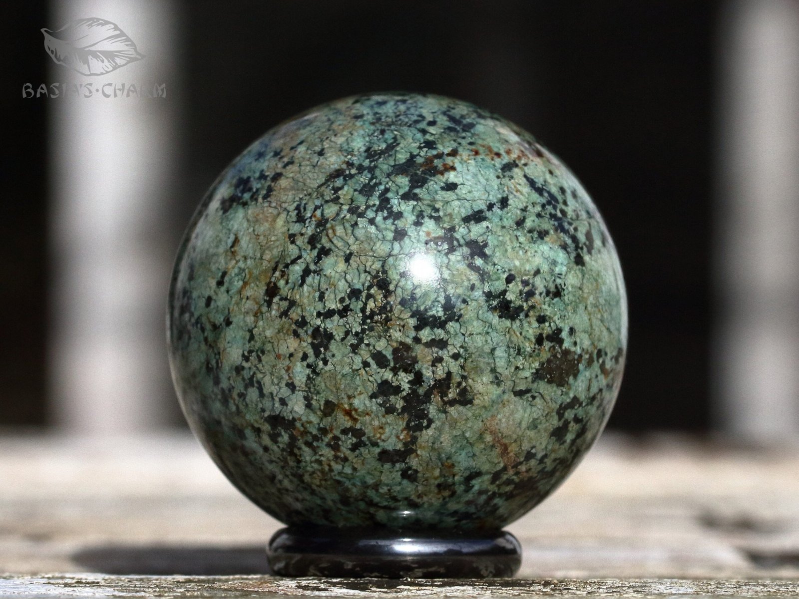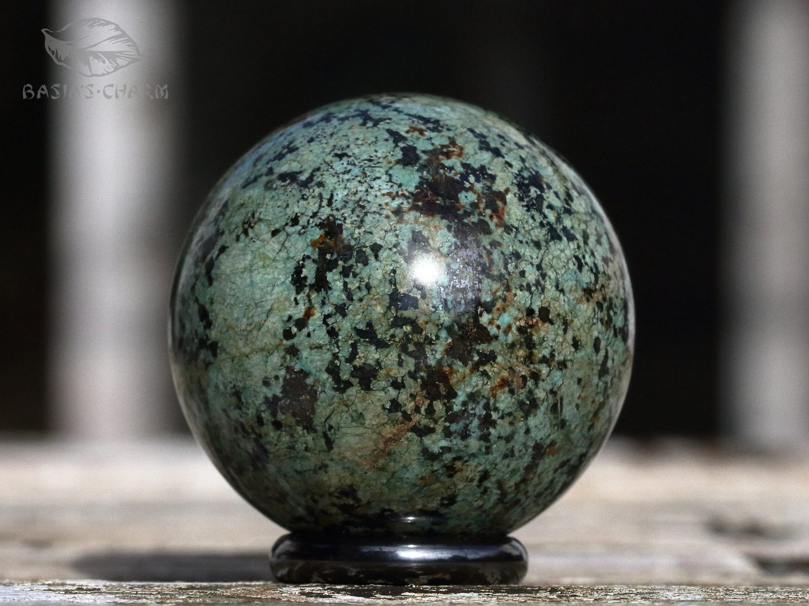 Short description: This sphere consists of turquoise. Base mineral: TurquoiseDetailed Composition: TurquoiseLocality: AfricaDiameter: 48 mm (1.91 inch)Weight: 143 g (5,04 oz)